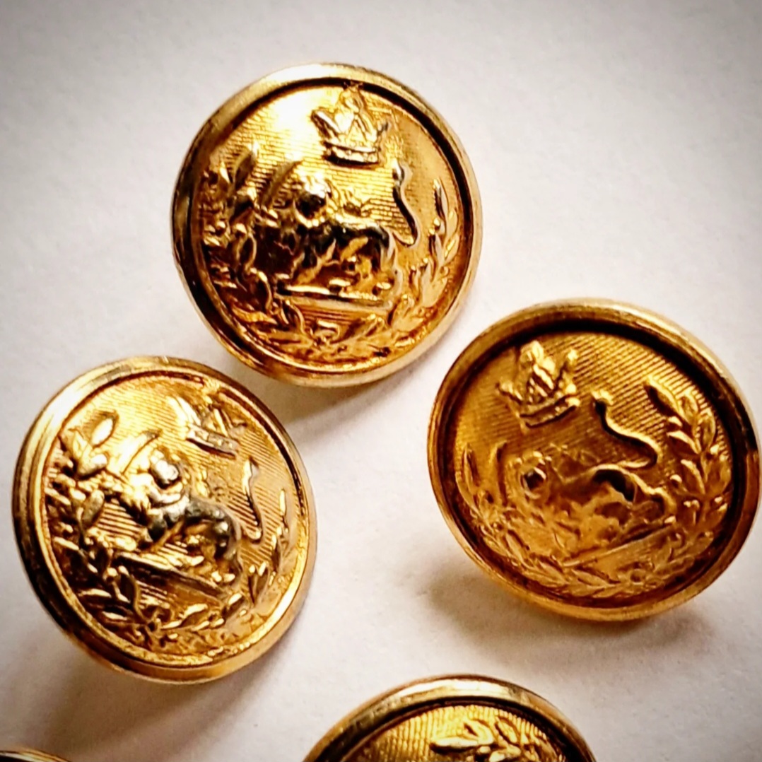 یک عدد دکمه کوچک ایرانی شیر و خورشید پهلوی خوشه دار کمیاب