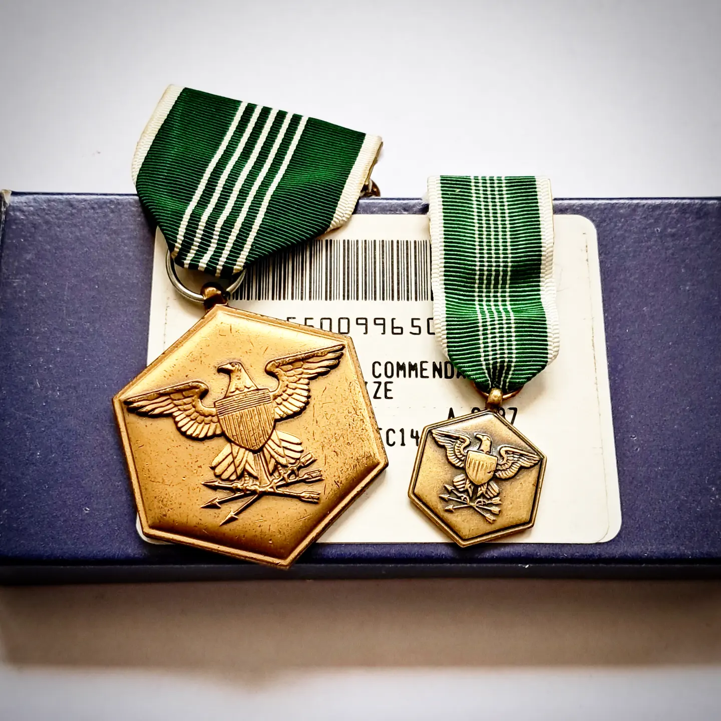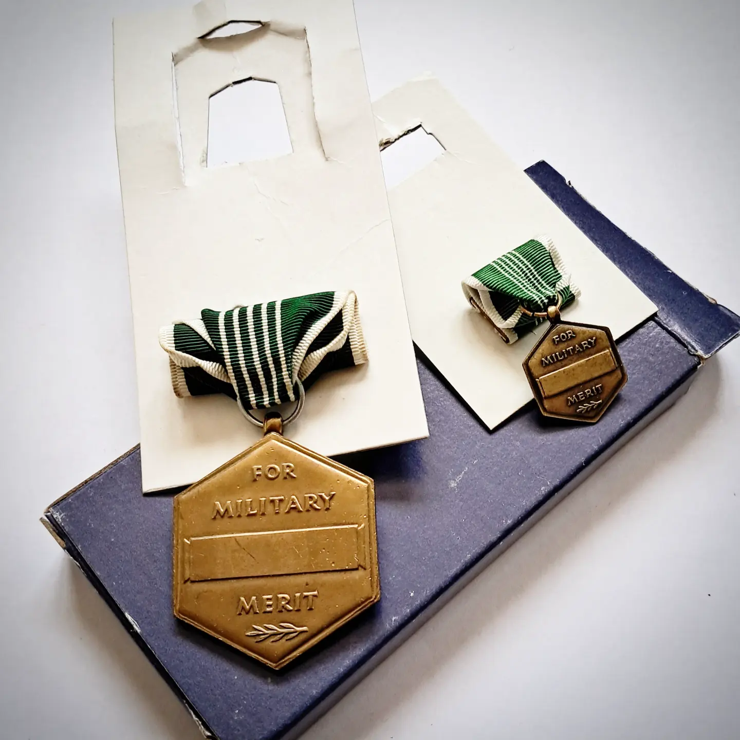 جفت مدال روز و شب قدیمی لیاقت Military Merit نیروی زمینی ارتش آمریکا با جعبه