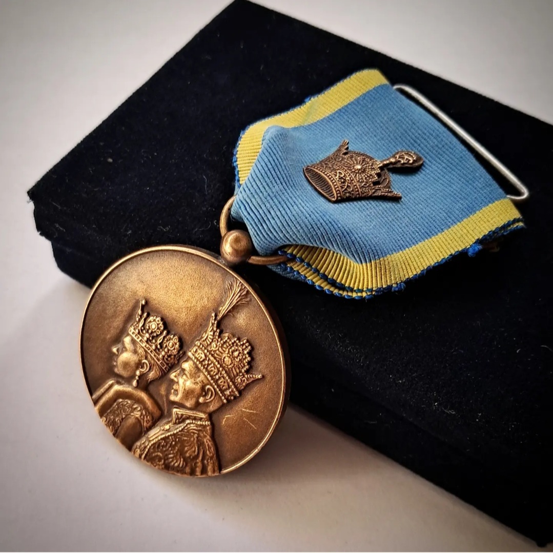 مدال تاجگذاری آبان 1346 پهلوی با جعبه