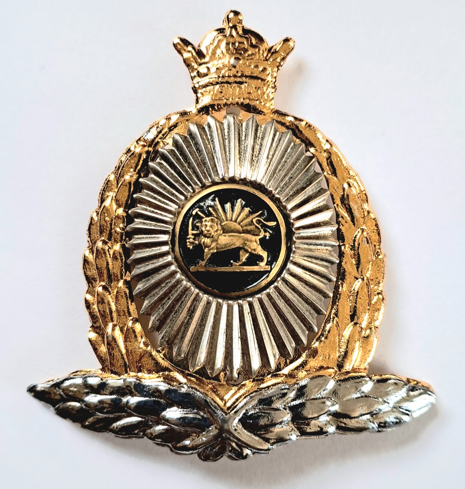 نشان کلاه تیمساری نیروی زمینی ارتش پهلوی نقش تاج و شیر و خورشید.